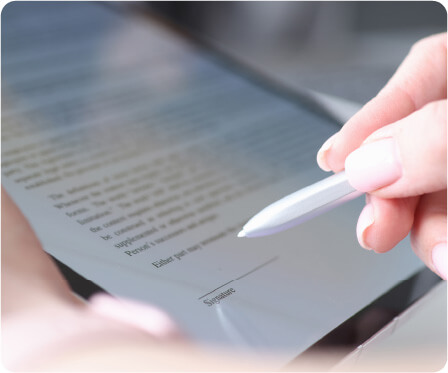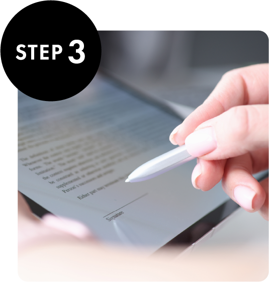査定結果に満⾜したら、チャット内で「契約⼿続き」に進むことができます。必要な書類や情報は全てチャットを通じて提出でき、担当者がプロセスを案内します。デジタル契約もサポートしており、⼿軽に取引を進めることが可能です。
